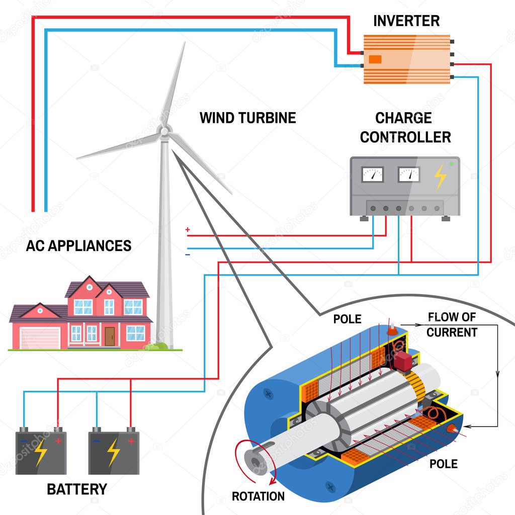 Schema di un generatore eolico connesso alla rete L'aerogeneratore è... | Download Scientific Diagram