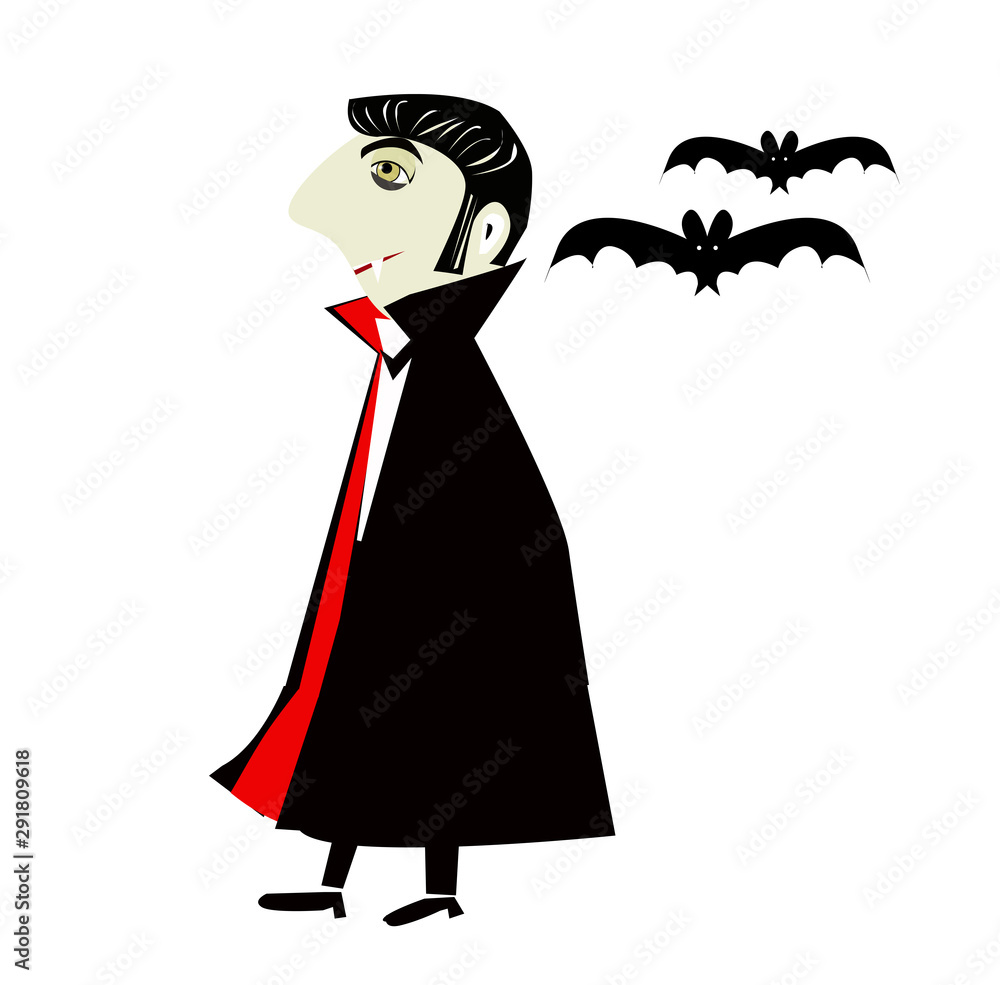 Halloween, personaggio di Dracula con pipistrelli, isolato su sfondo bianco Stock Illustration | Adobe Stock