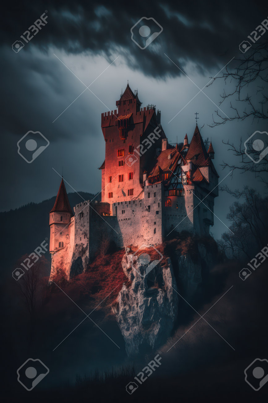 Immagini Stock - Castello Di Dracula Nella Notte. Ai Generativo. Image 202320650