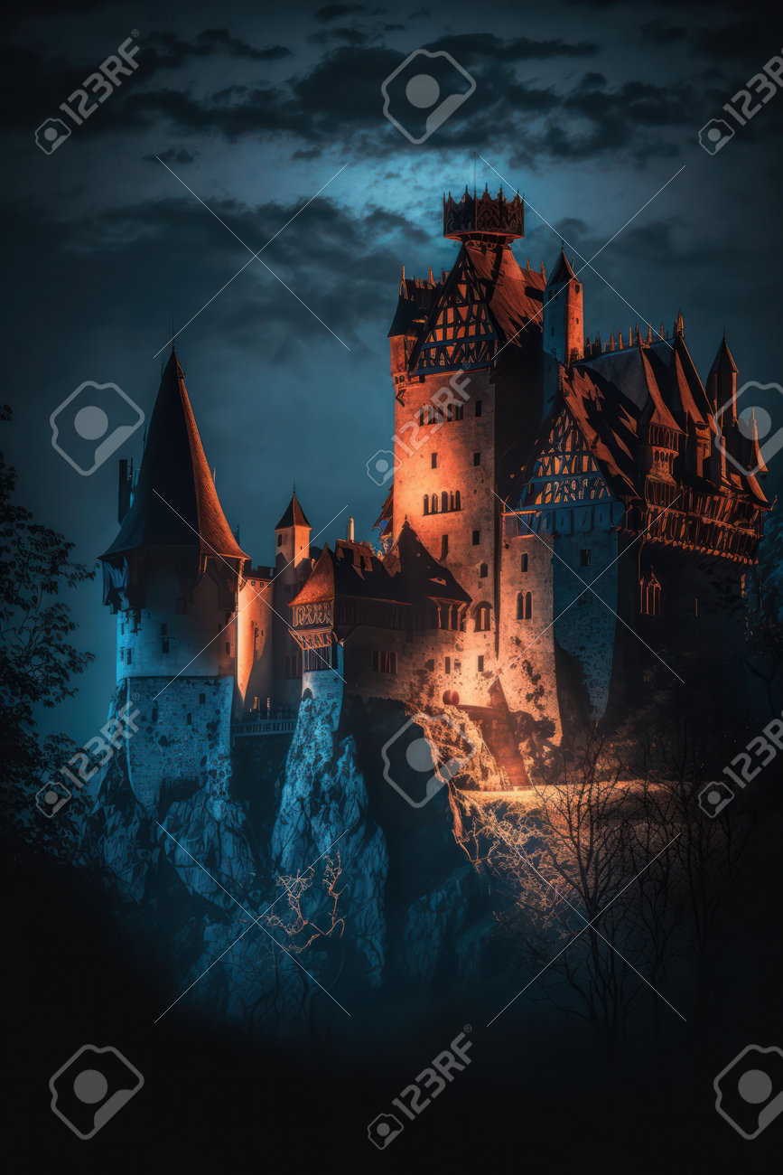 Immagini Stock - Castello Di Dracula Nella Notte. Ai Generativo. Image 202320655
