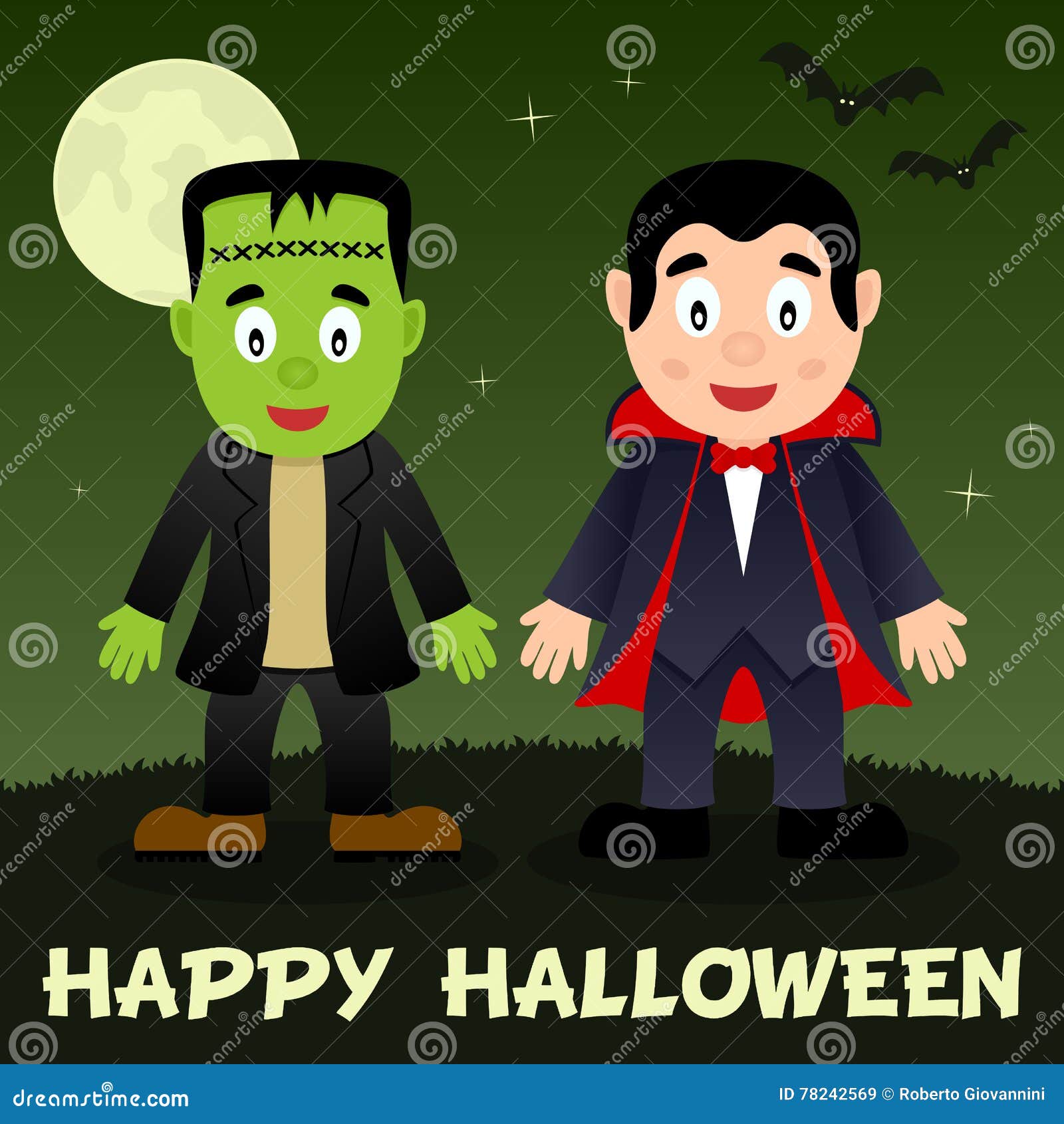 Notte Di Halloween - Frankenstein & Dracula Illustrazione Vettoriale - Illustrazione di festività, sfondo: 78242569