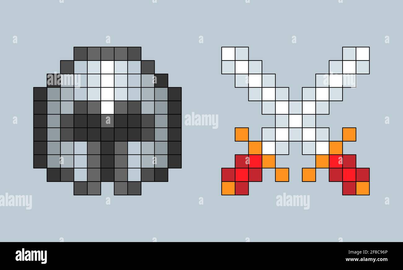 Colored Pixel Sword On A White Background. A Pixelated Eight-bit Sword In The Style Of Modern Games. Illustration Stock Photo, Picture and Royalty Free Image. Image 169055110.