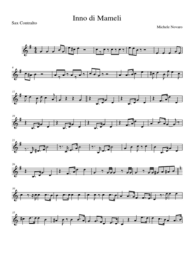Inno Di Mameli Arr - Sax Contralto PDF | PDF