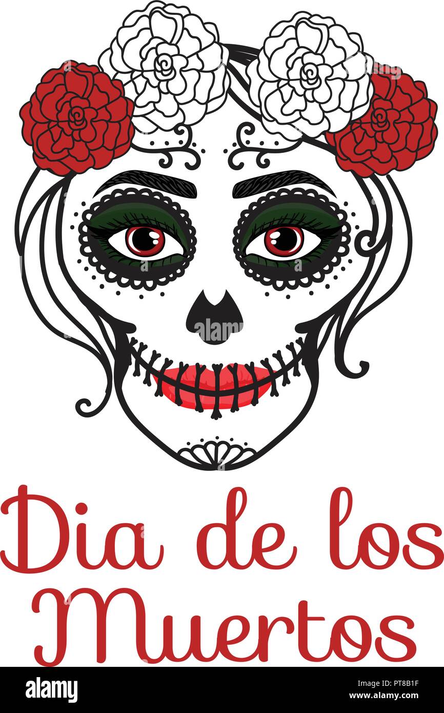 Segno Dia de los Muertos. Catrina donna con make up del cranio di zucchero. Mexican giorno dei morti. Illustrazione Vettoriale disegno a mano Immagine e Vettoriale - Alamy