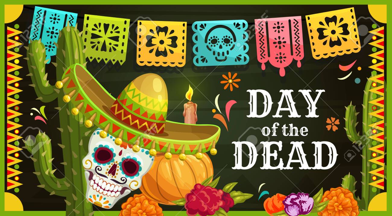 Dia De Los Muertos Giorno Della Morte E Halloween Papel Picado Design Con Teschi Decorazione Di Giardinaggio in Carta Messicana Illustrazione Vettoriale - Illustrazione di colore, festival: 200501868