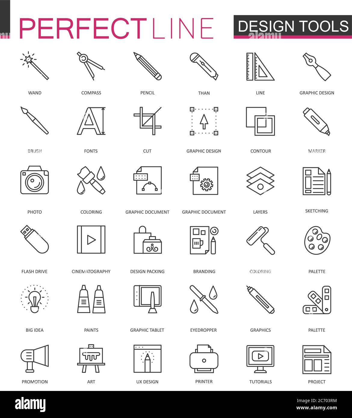 Icone della linea degli strumenti di progettazione grafica e creativa. Strumenti di disegno, contorno, illustrazione vettoriale Immagine e Vettoriale - Alamy