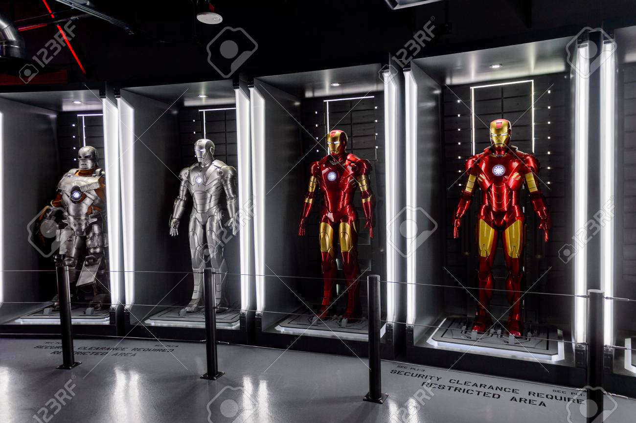 LAS VEGAS, NV, USA - SEP 20, 2017: Iron Man Costumes At The Tony Stark Base At The Avengers Experience In Las Vegas. Stock Photo, Picture and Royalty Free Image. Image 114101212.