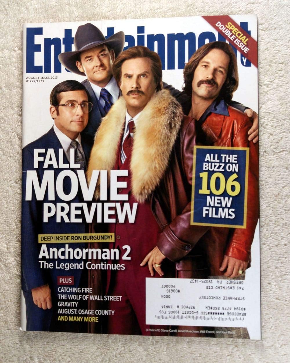 Steve Carell, David Koechner, Will Ferrell & Paul Rudd (Brick Tamland, Champ Kind, Ron Burgundy & Brian Fantana) - Anchorman 2: The Legend Continues - Entertainment Weekly - #1272-1273 - August 16-23, 2013