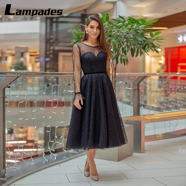 Abito da sera in pizzo nero con maniche lunghe lunghezza alla caviglia abiti da ballo Sexy in pizzo trasparente abiti Casual da donna economici - AliExpress