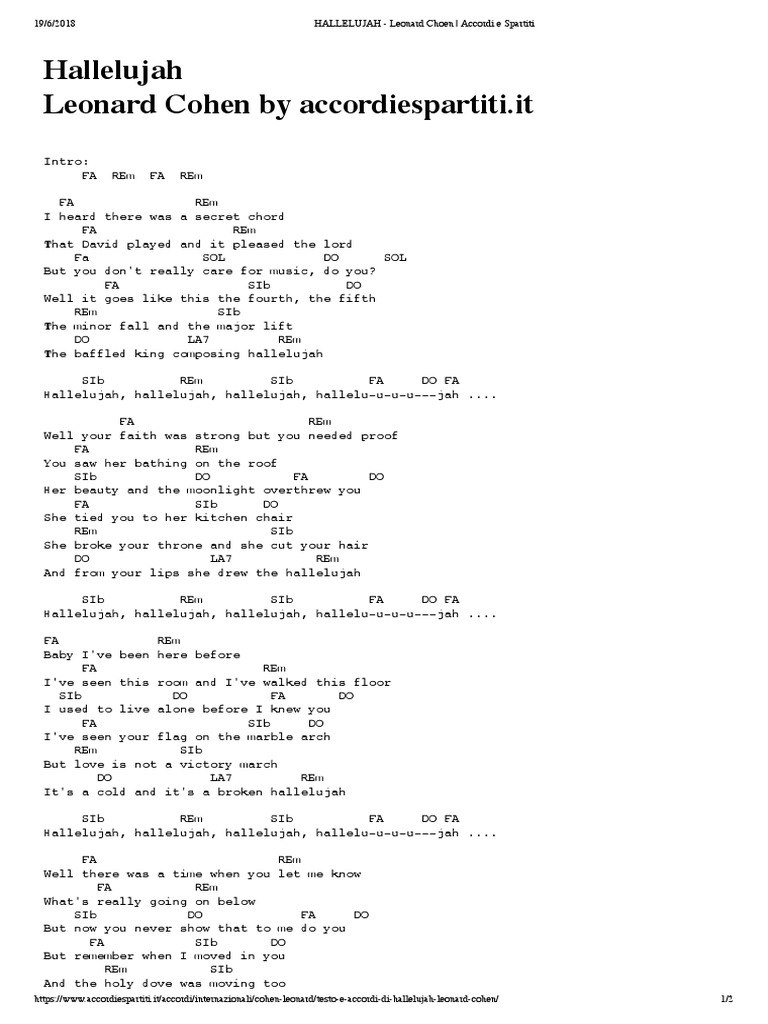 HALLELUJAH - Leonard Choen - Accordi e Spartiti | PDF
