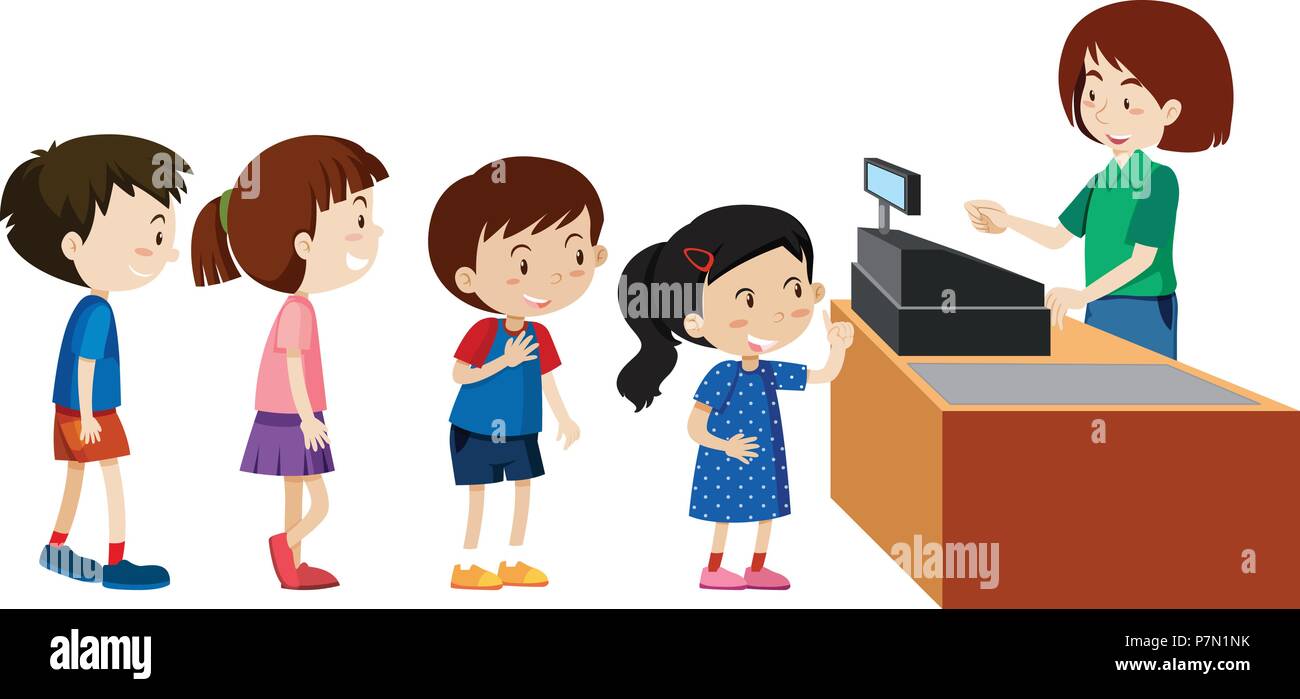 I bambini di acquistare da un cassiere illustrazione Immagine e Vettoriale - Alamy