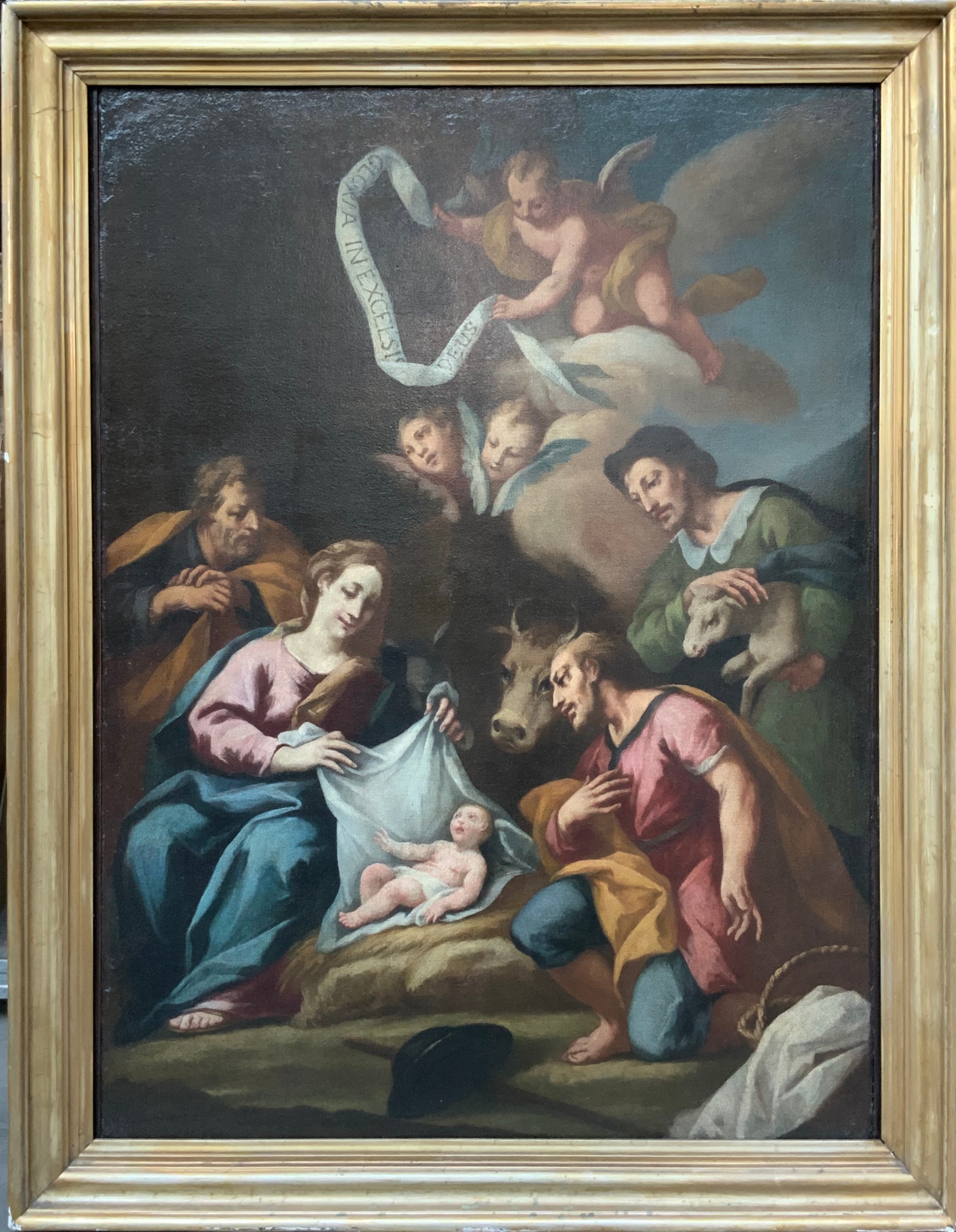 Hans von Aachen (Colonia 1552 - Praga 1615) bottega Natività con adorazione dei pastori Antique paintings