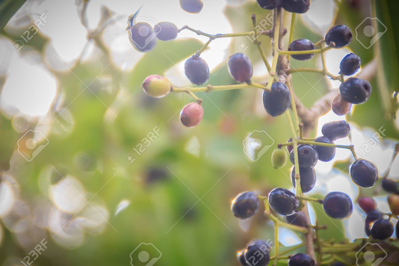 Organic Purple Syzygium Cumini Fruits On Tree. Syzygium Cumini, Known As Jambul, Jambolan, Jamblang Or Jamun, Is An Evergreen Tropical Tree. Stock Photo, Picture and Royalty Free Image. Image 85475330.