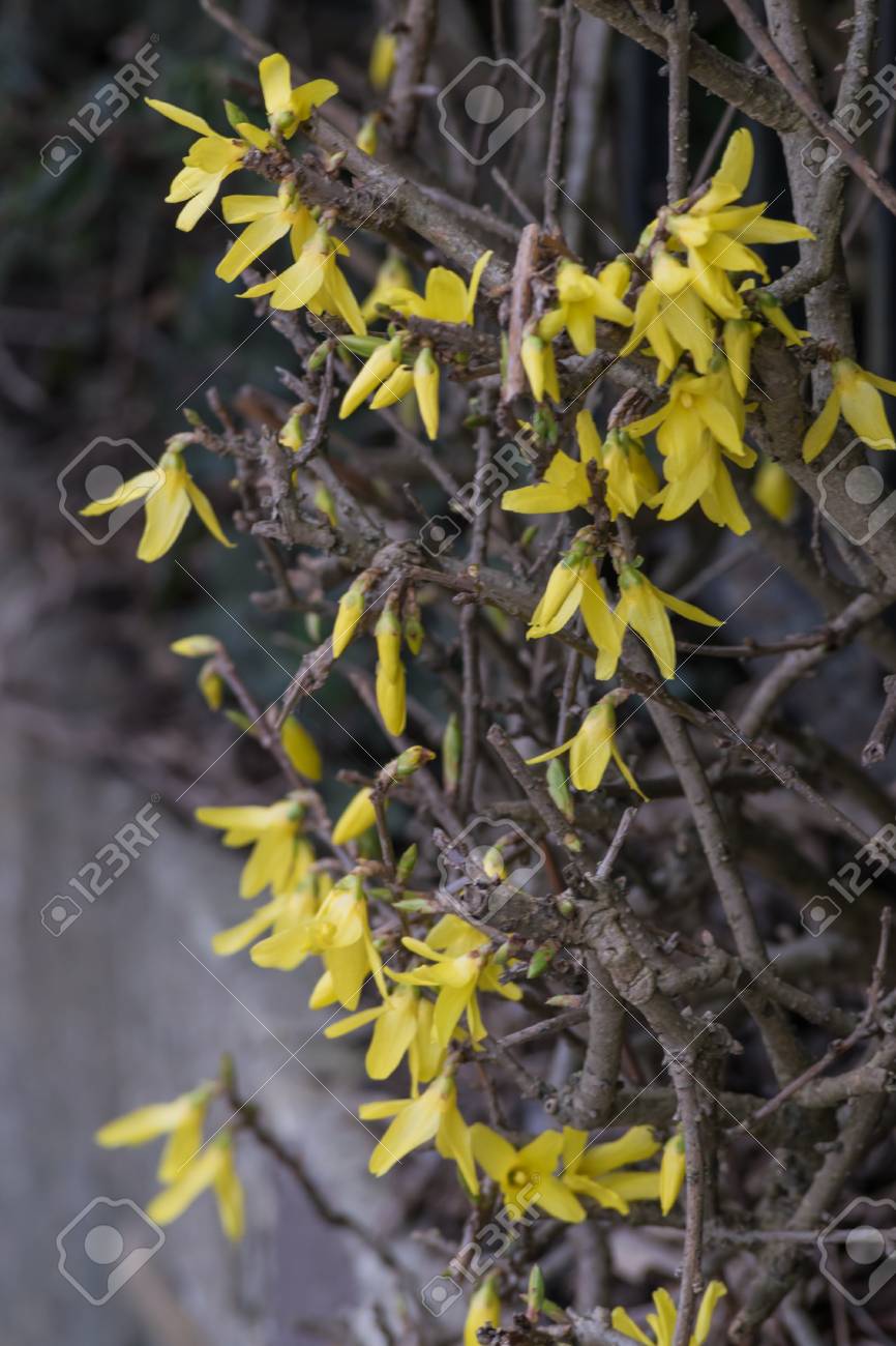 Immagini Stock - Arbusti A Fioritura Precoce Primaverile Con Fiori Gialli Forsizia Intermedia. Image 100123885