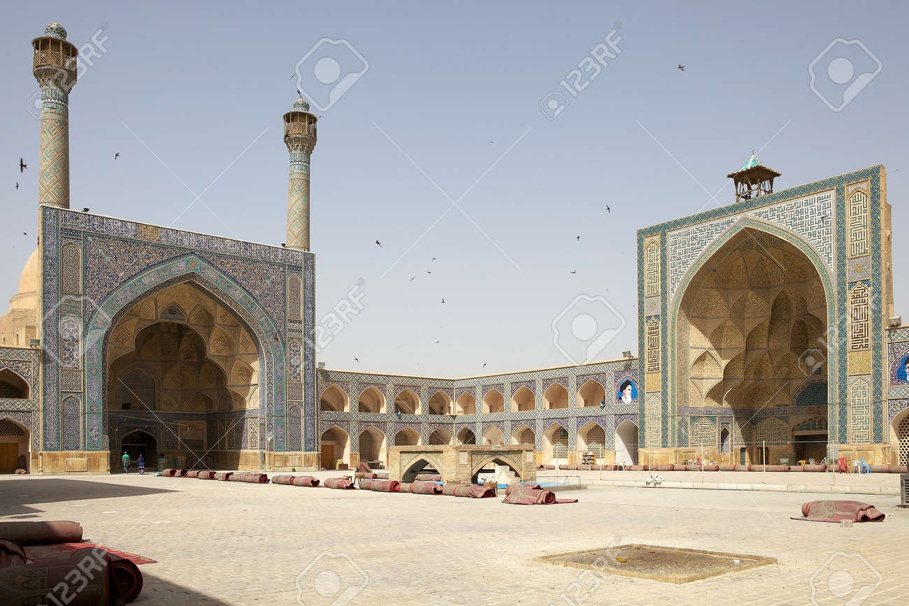 Architecture Details Of The South Side And West Side Iwan At The Jameh Mosque Of Isfahan, Iran. The Mosque Is One Of The Oldest Mosques Still Standing In Iran And It Is