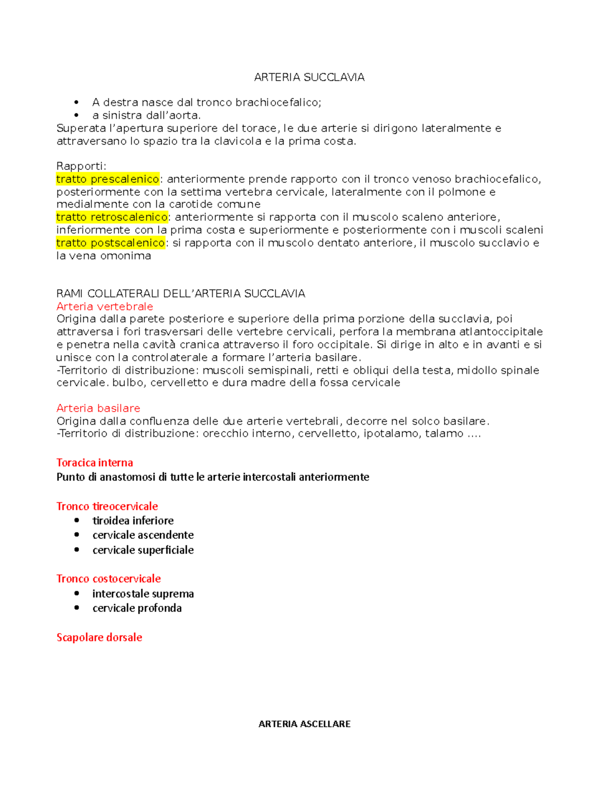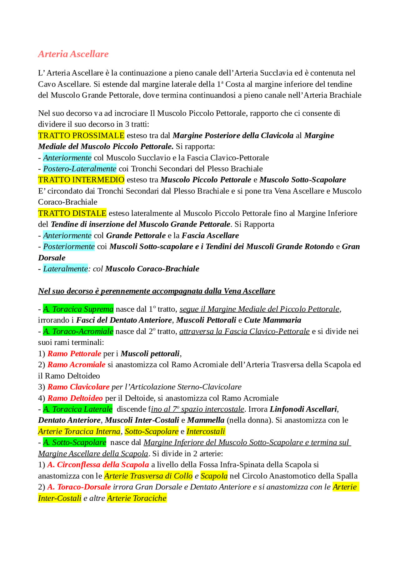 Anatomia Arteria Ascellare | Appunti di Anatomia | Docsity