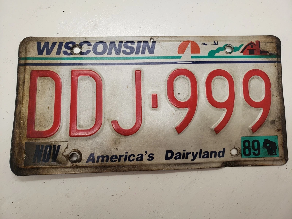 Exp 1989 Wisconsin Auto Car License Plate, Dairy Farm Scene DDJ 999 Red Letters | eBay
