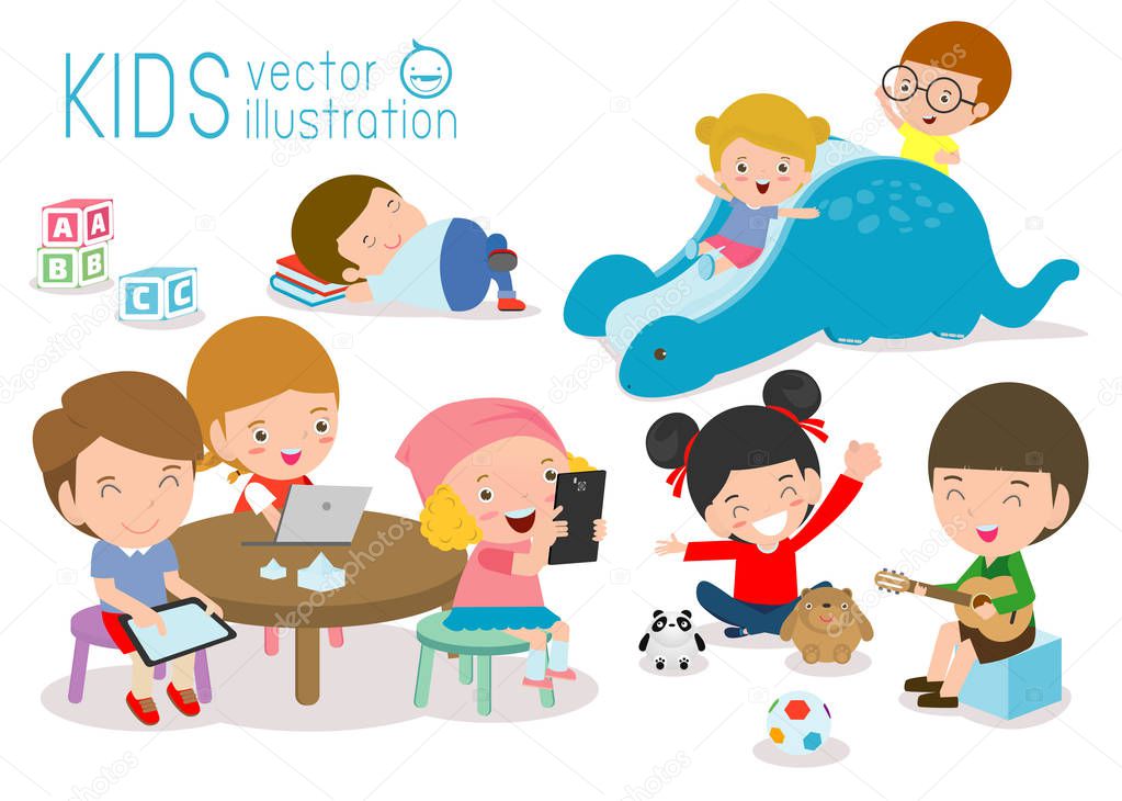 Bambini Che Giocano In Classe Vettoriali, Illustrazioni e Clipart