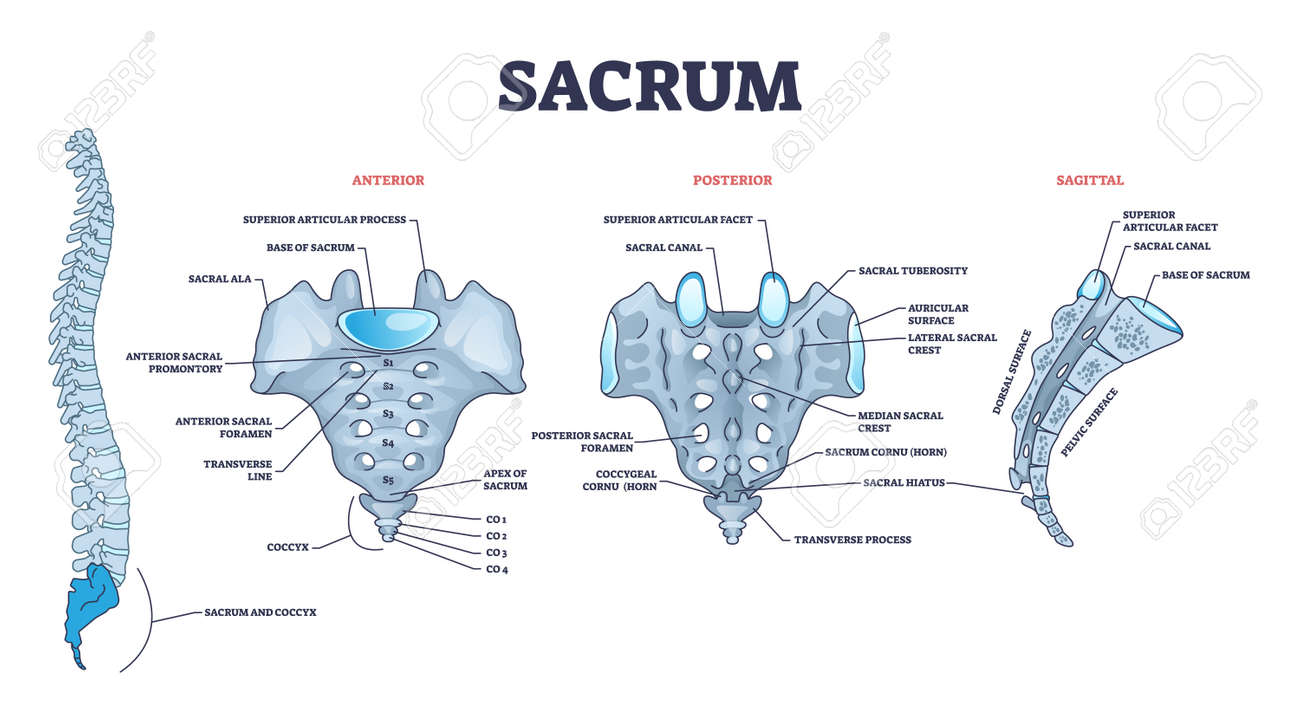 Sacrum As Spinal Bone Structure Anatomical Description Outline Diagram Royalty Free SVG, Cliparts, Vectors, and Stock Illustration. Image 181433392.