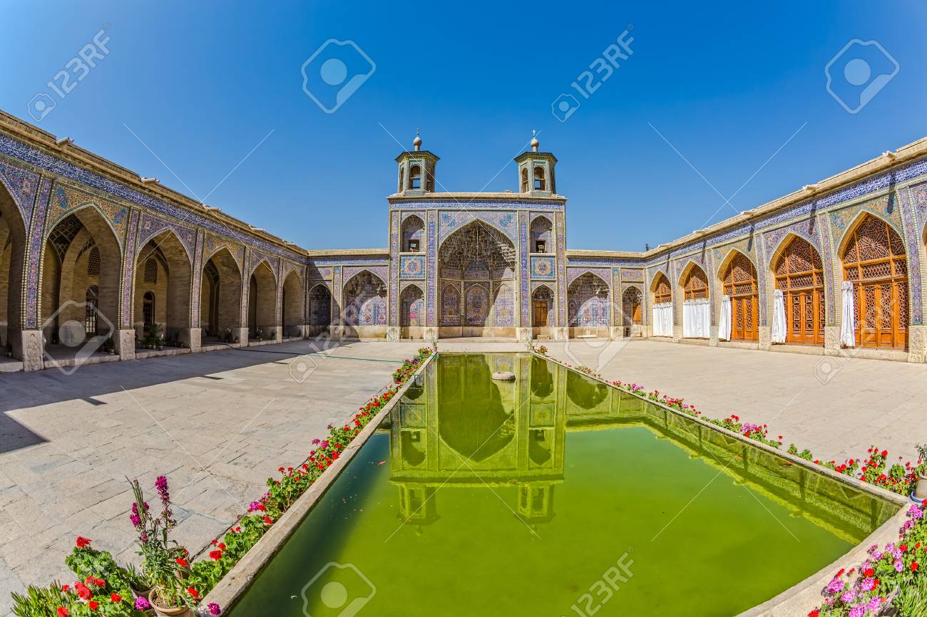 Immagini Stock - Fisheye Vista Del Bellissimo Cortile Con Piscina Di Al-mulk Nasir È Una Moschea Tradizionale Situato Nel Goad-e-araban Posto A Shiraz.. Image 50130557