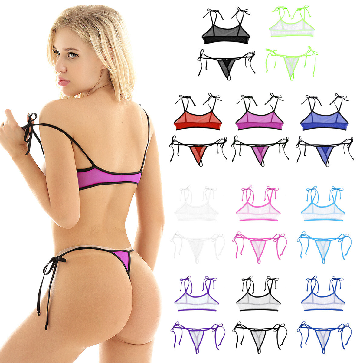 Damen Micro Bikini Set Mini BH Bra mit G-String Tanga Transparent Monokini sexy | eBay