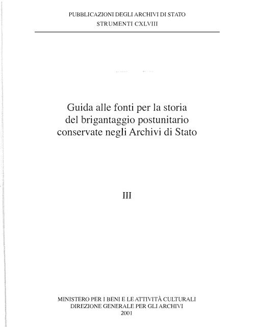Guida alle fonti per la storia del brigantaggio postunitario conservate ...