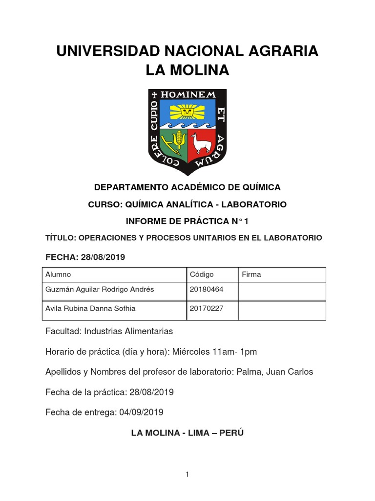 Informe #1 Operaciones y Procesos Unitarios en El Laboratorio. | PDF | Fase (materia) | Calor