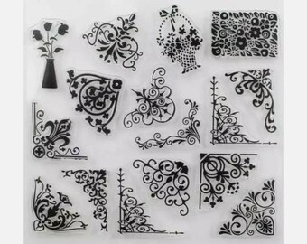GLOBLELAND Timbri Trasparenti con Cornice e Angolo Retro per Decor Scrapbooking Fai da Te Bordi Architettonici Barocchi in Stile Europeo Timbri Trasparenti in Silicone per Decorazione Album Foto : Amazon.it: Casa e