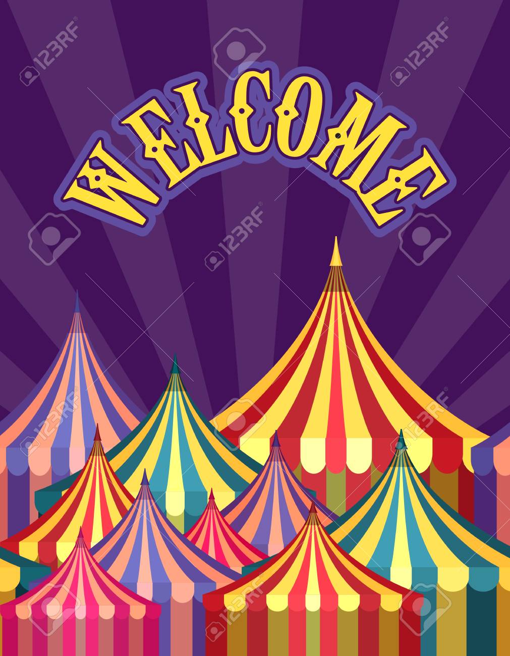 Circo, Feria De Diversión, Parque De Atracciones Tema Plantilla Ilustración Ilustraciones svg, vectoriales, clip art vectorizado libre de derechos. Image 128569645
