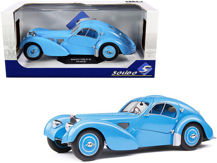 1937 Bugatti Type 57 SC Atlantic RHD (Right Hand Drive) Light Blue 1/18 Diecast Model Car by Solido - LIVECARMODEL.com