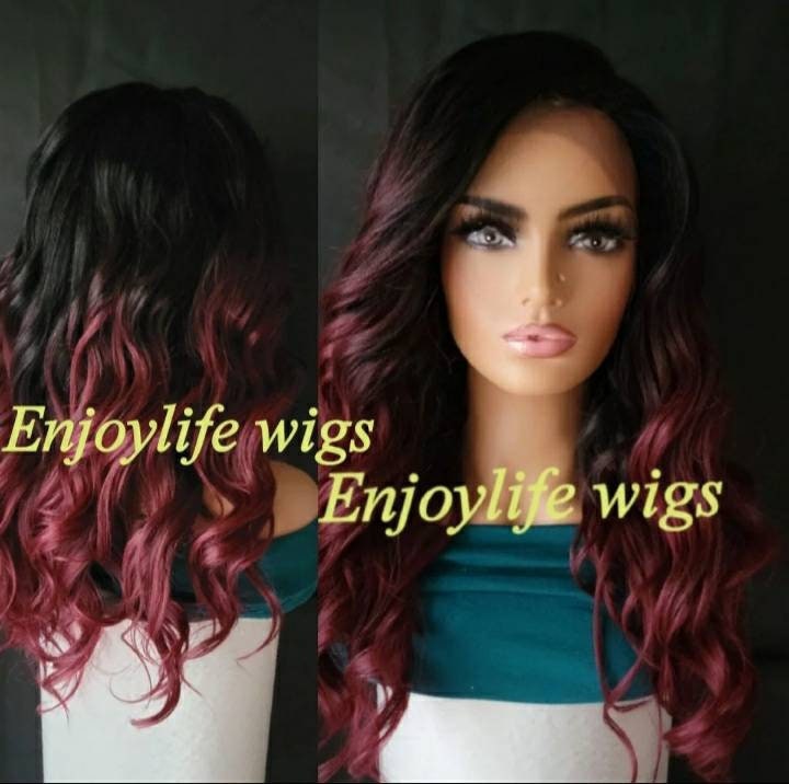 Black Burgundy Red Wavy Lace Front Multi Part Wig - Etsy Hong Kong