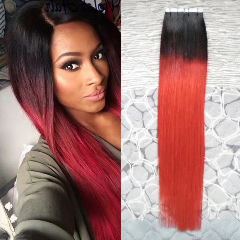 Moda Capelli Rossi E Neri Ombre Estensioni Capelli 100G Ombre Vergini Brasiliani Capelli Lisci Nastro Su Capelli Estensioni 18 20 22 Da 27,35 € | DHgate