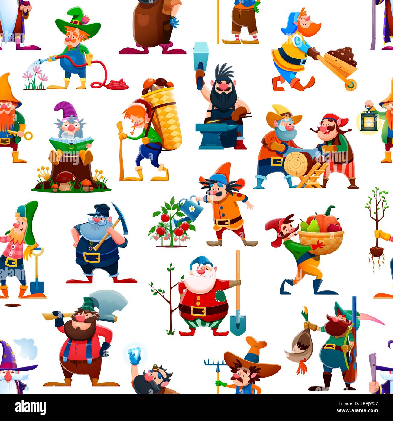 SVG, Vettoriale - Modello Di Gnomo Da Giardino Senza Soluzione Di Continuità. Sfondo Nano. Ornamento Di Vettore. Trama Del Tessuto Del Bambino. Image 140690461
