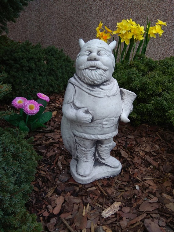 Vichingo con statuetta in pietra di corno, statua del guerriero divertente, scultura scandinava, arredamento da giardino, ornamento esterno vichingo norreno, arredamento del prato - Etsy Italia