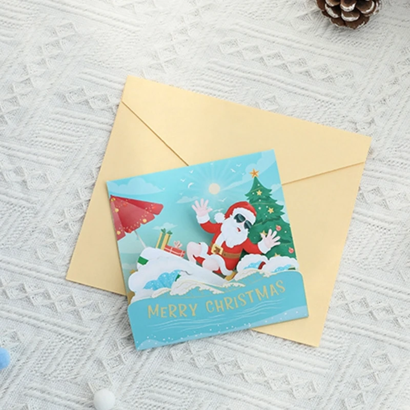 Biglietto d'auguri di Natale con disegno del nonno surfista Carta regalo di benedizione colorata - AliExpress