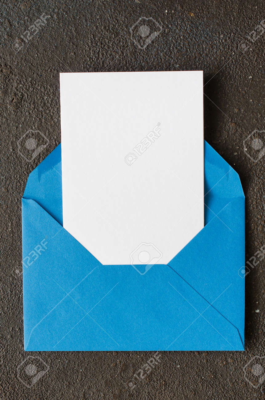 Immagini Stock - Busta Blu Con Carta Bianca Vuota. Biglietto Di Auguri Per La Festa Del PapĂ O Del Nonno. Modello Di Lettera. Vista Dall'alto Con Spazio Per Il Testo. Disposizione Piatta.