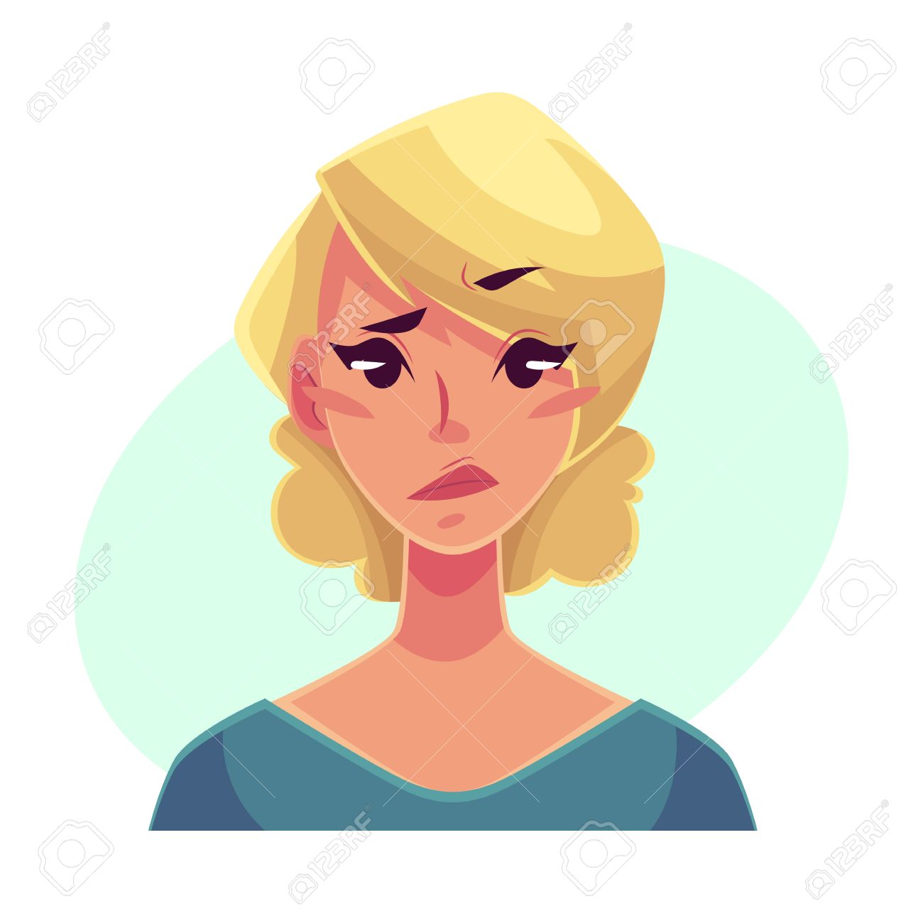 Pretty Blond Woman, Upset, Confused Facial Expression, Cartoon Vector Illustrations Isolated On Blue Background. Beautiful Woman Feeling Upset, Concerned, Confused Frustrated. Royalty Free SVG, Cliparts, Vectors, and Stock Illustration. Image 64765557.