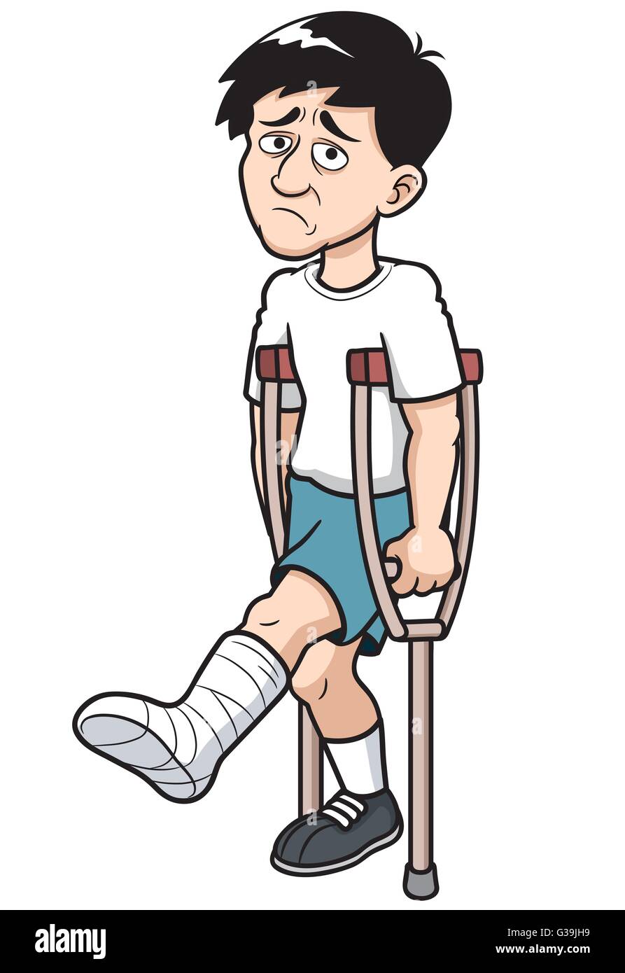 Immagine del cartone animato di un bambino/uomo con gamba rotta Immagine e Vettoriale - Alamy