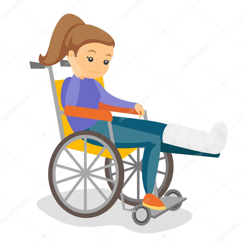 Ragazza disabile con gamba rotta. vettore di concetto di trauma sportivo. donna su una sedia a rotelle e sogna di allenamento, competizione. assistenti sociali, riabilitazione 6681801 Arte vettoriale a Vecteezy
