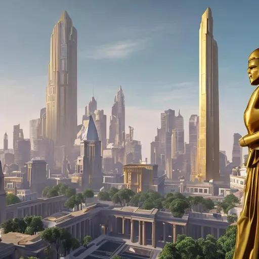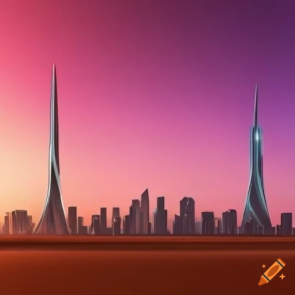 A stunning cityscape merging futuristic and egyptian architectural influences, desert on Craiyon