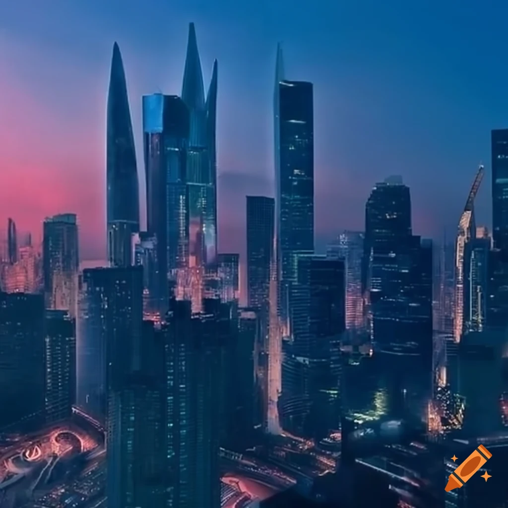 City with megatall skyscrapers on Craiyon