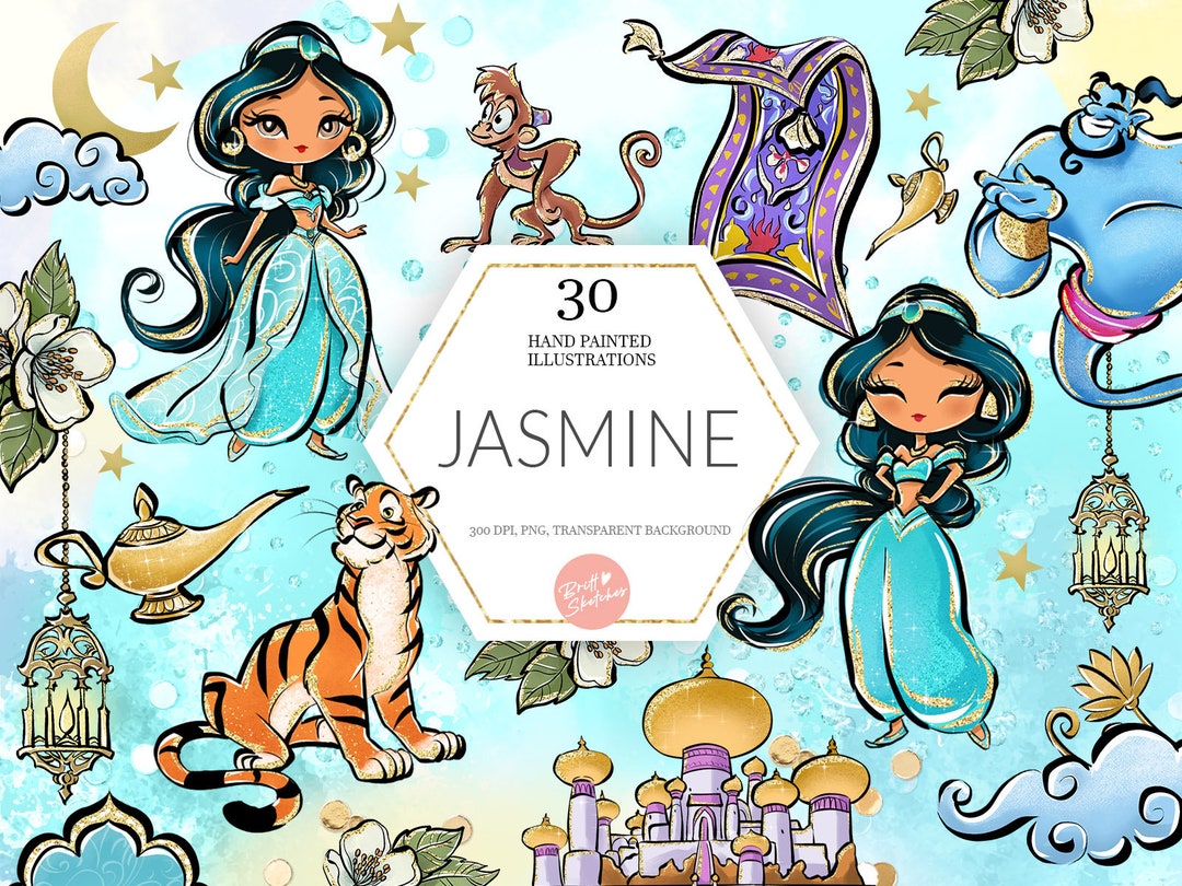 Jasmine Clipart Arabian Princess PNG Tiger Monkey Castle - Etsy