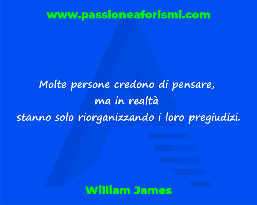 Moltissime persone credono di pensare quando stanno semplicemente riorganizzando i propri pregiudizi - William James | Citazioni, Persona, Riflessioni