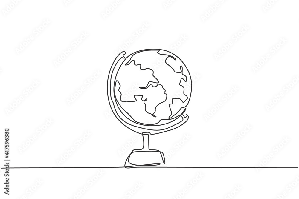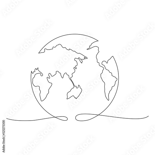 Vettoriale Stock Globe of the Earth one line drawing. Planet minimalist design continuous line art isolated on white background hand drawn vector illustration. | Adobe Stock