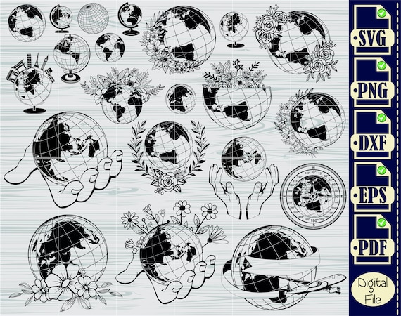 Globo mondo SVG Clip Art Cut File Silhouette dxf eps png jpg - Etsy Italia