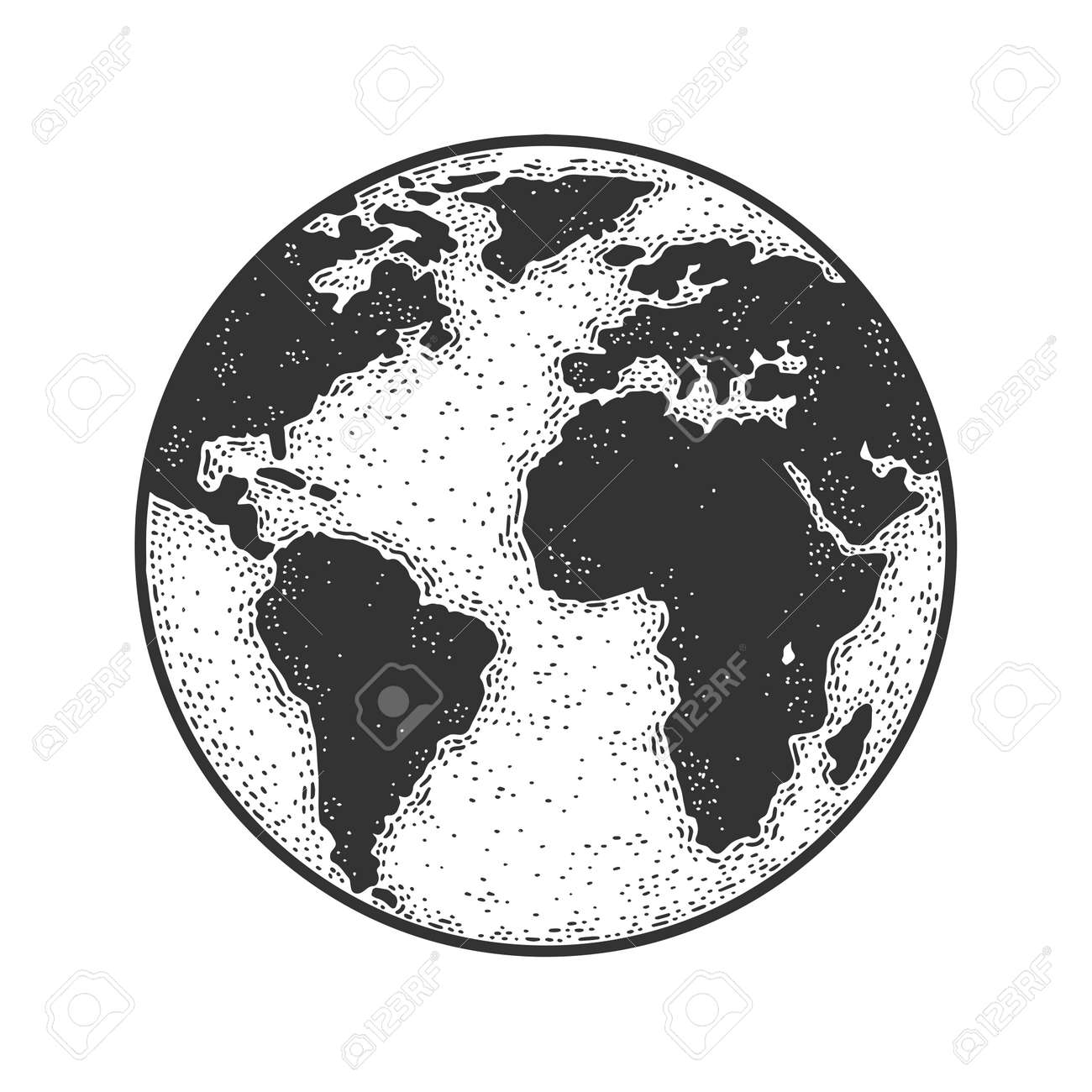 SVG, Vettoriale - Pianeta Terra Globo Schizzo Incisione Illustrazione Vettoriale. Design Con Stampa Di Abbigliamento T-shirt. Imitazione Di Scratch Board. Immagine Disegnata A Mano In Bianco E Nero.. Image 145600122