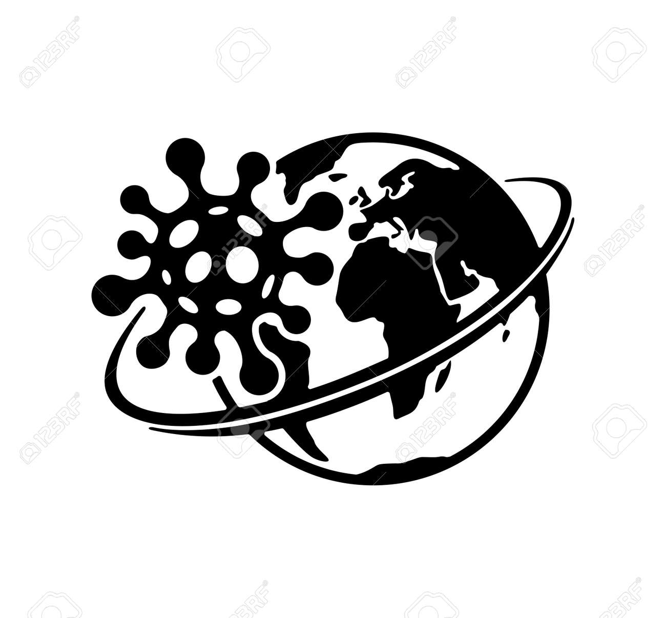 SVG, Vettoriale - Icona Covid-19 - Combinazione Di Globo Terrestre E Virus In Orbita Attorno A Un Pianeta - Simbolo Di Pandemia E Nuovo Concetto Normale. Image 152319897