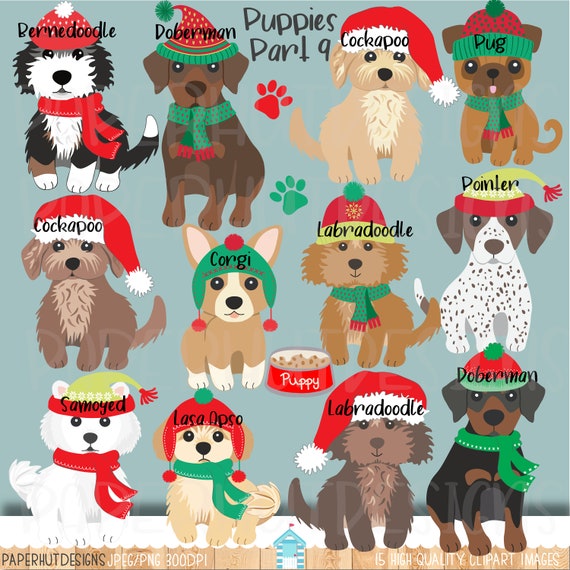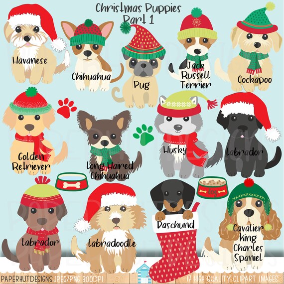 Clipart di Natale cucciolo cane/Clipart cane/cuccioli/Clip Art cucciolo/Clip Art cane/Bassotto/Carlino/Labrador/Cocapoo/Chihuahua/Labradoodle/Retriever - Etsy Italia