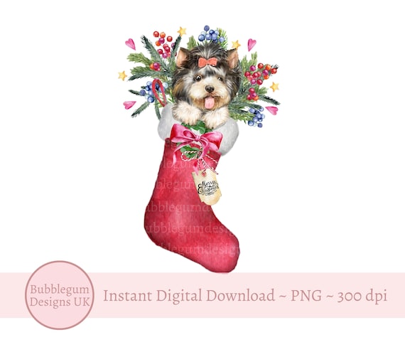 Calza di Natale del cucciolo Yorkshire Terrier PNG, design di sublimazione, design di cartoline di Natale, design del sacco di Babbo Natale, download digitale istantaneo - Etsy Italia