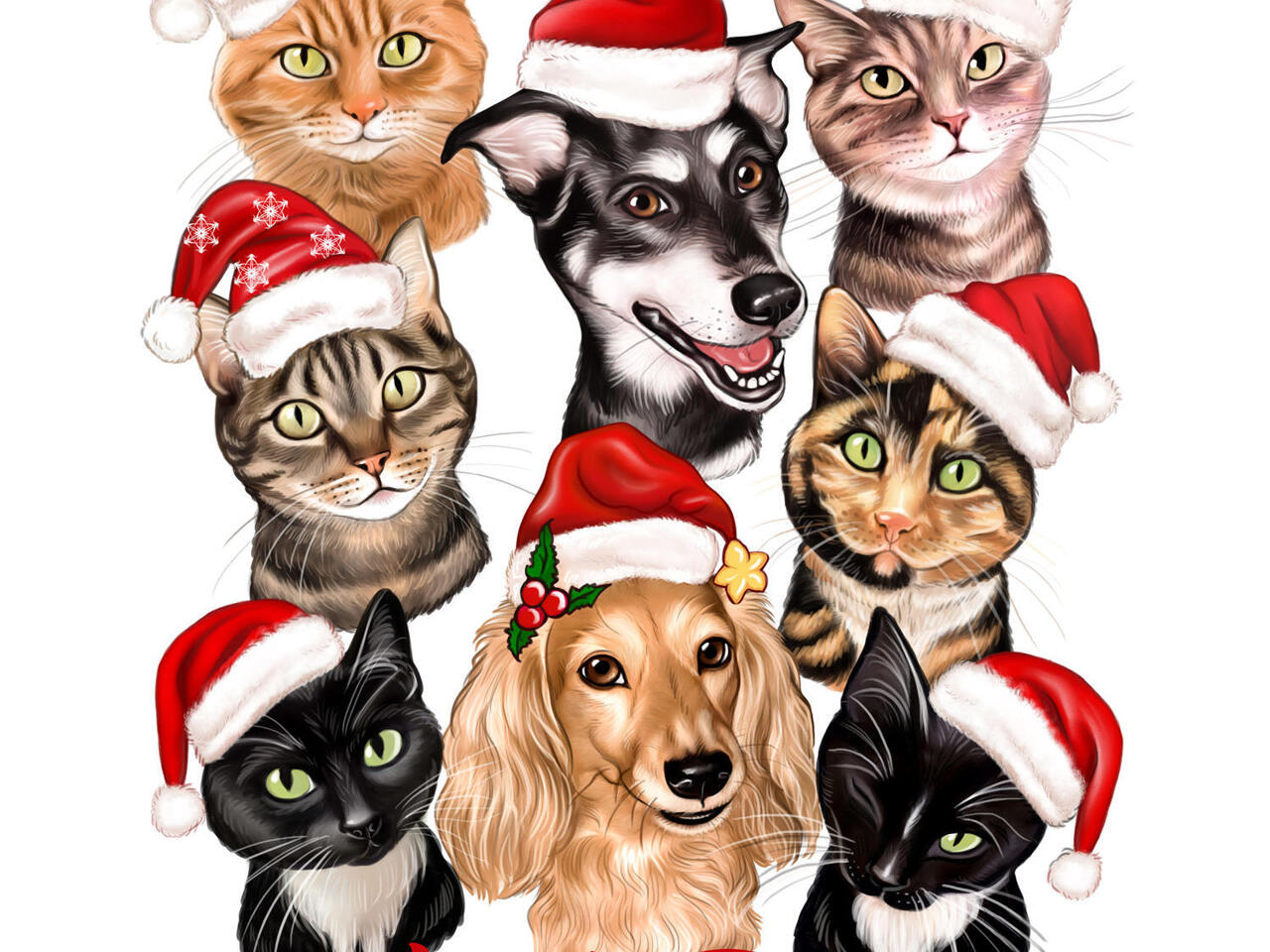 Caricatura di animali domestici di Natale: disegno di caricatura di animali domestici delle vacan...